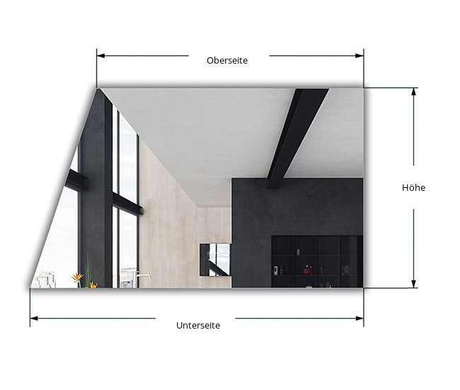 Der trapezförmige Spiegel Dolores wird aus hochwertigem Spiegelmaterial von AGC hergestellt, das eine erhöhte Beständigkeit gegen Feuchtigkeit aufweist und die Reflexion nicht verfälscht. Die hohe Qualität des Produkts wird durch die 3-jährige Garantie von J-Mirror™ bestätigt. Die Form des Spiegels eignet sich ideal für den Einsatz in Dachgeschossräumen mit abfallenden Decken oder schrägen Wänden. Der Neigungswinkel der Seitenkante des Spiegels kann so eingestellt werden, dass er mit dem Neigungswinkel der Wand oder Decke übereinstimmt.